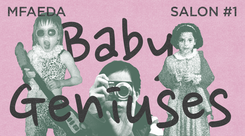 We want you to submit your childhood work to us. Film, photo, slideshow….what do you have for us to show off? Dig through your archives, family tapes, and childhood YouTube pages and send us your craziest, silliest, well-worn, and loved work under 15 minutes. Video and photo works in ANY AND ALL forms are welcome! (Analog, digital, print…you name it, we will screen it.) Submit your content and a short description to babygeniusesmfa@gmail.com by November 10th and reach out to us there for any questions or comments! Anyone in the Duke, Durham, and surrounding communities are welcome to submit. Spread the word!